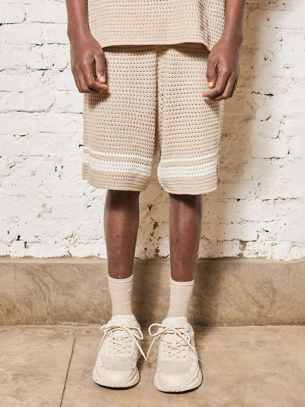 Bermuda tejida con corte relax y detalle en contra tono, ideal para un look cómodo y con onda. Cuenta con elástico y tiras para atar, perfecta para combinar con la remera Halen y sumar estilo casual a tu día.