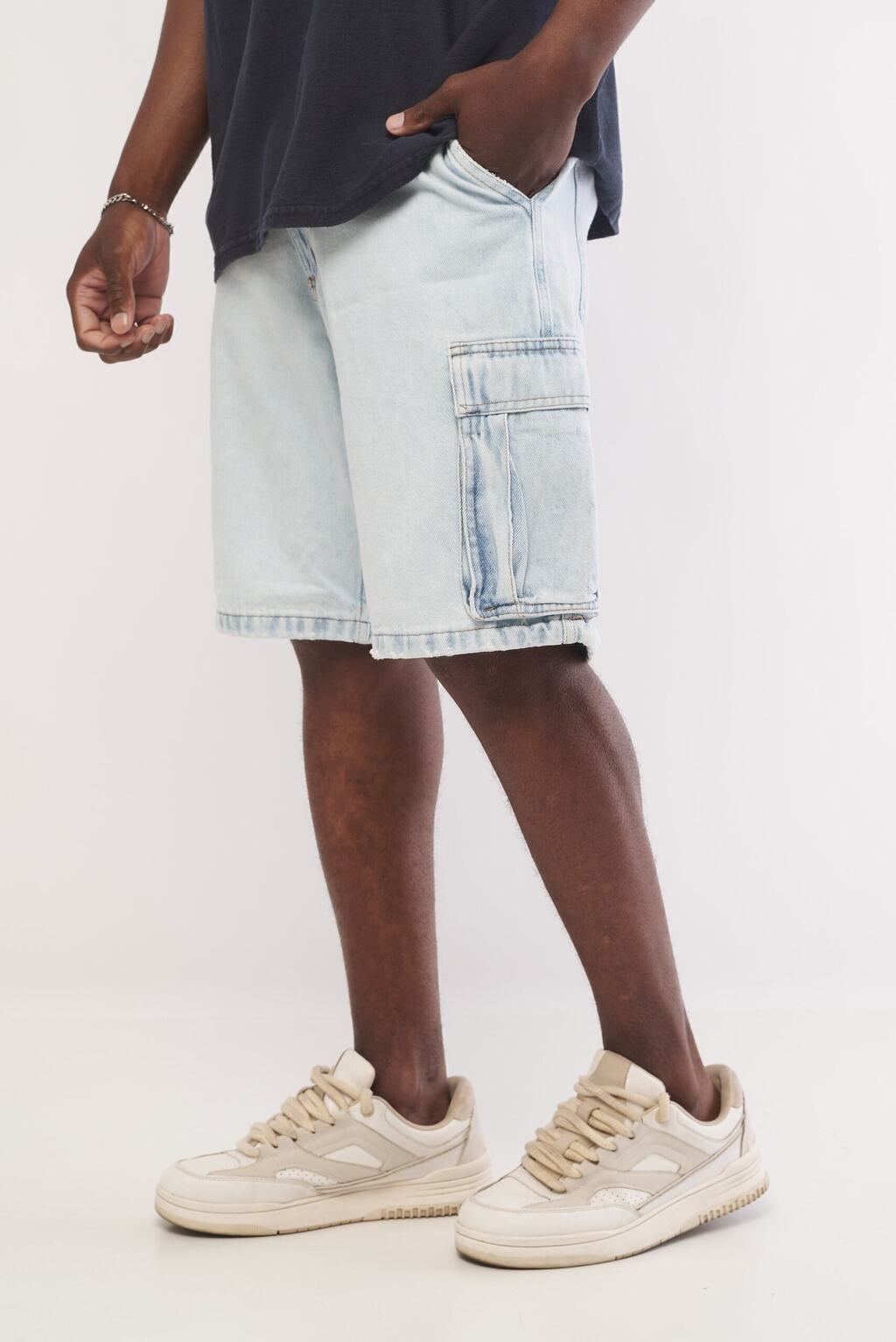 Bermuda de jean tipo cargo, con bolsillos amplios y un corte relajado que suma onda a cualquier look.