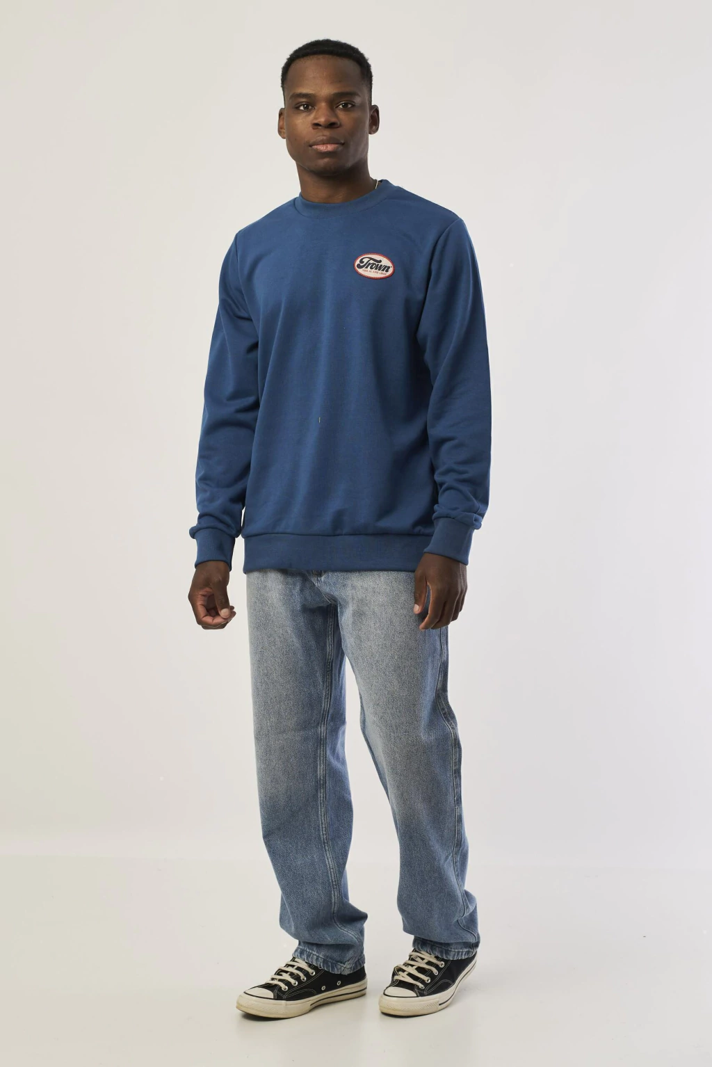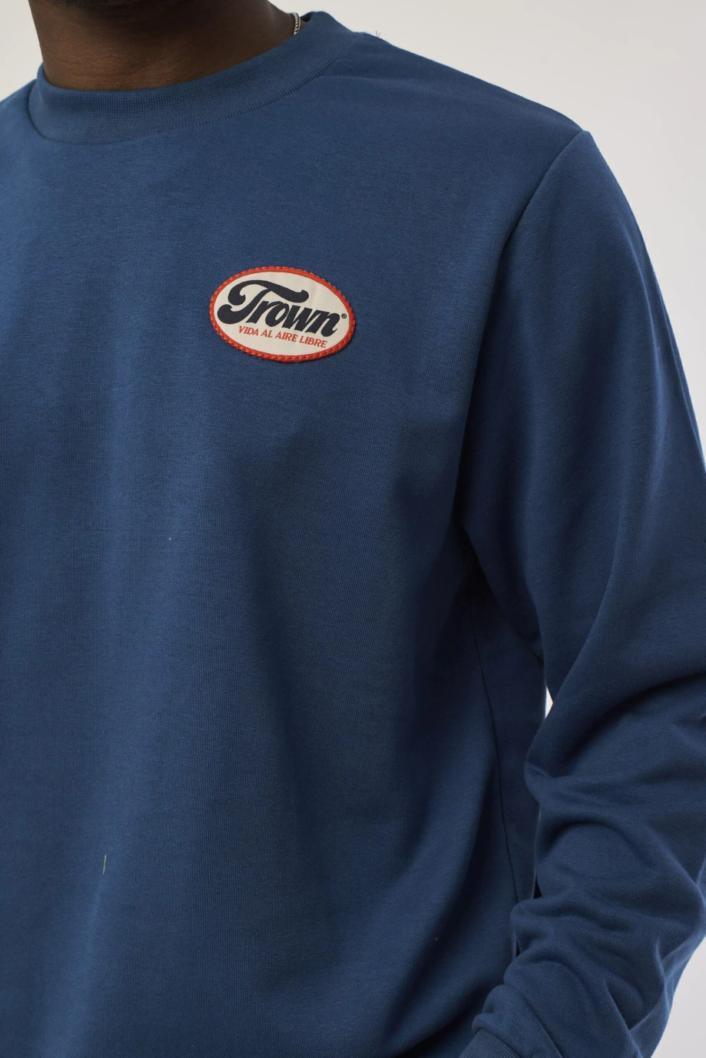 Buzo de algodón rústico, cuello redondo y fit relajado. Lleva un aplique pequeño al frente que suma un detalle sutil y moderno. Ideal para todos los días.