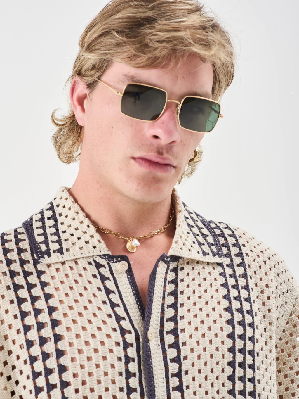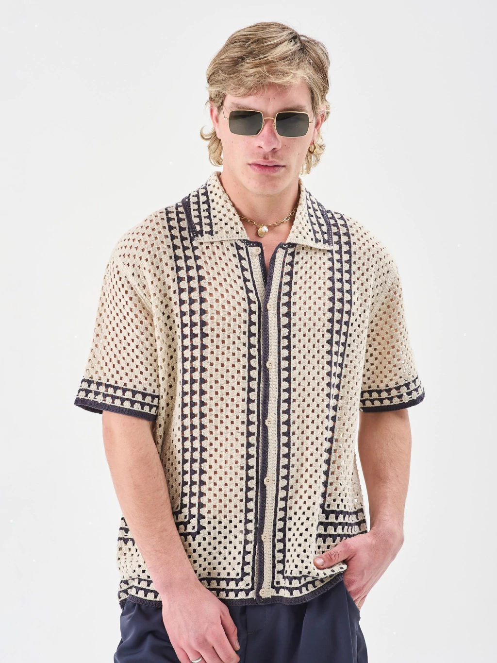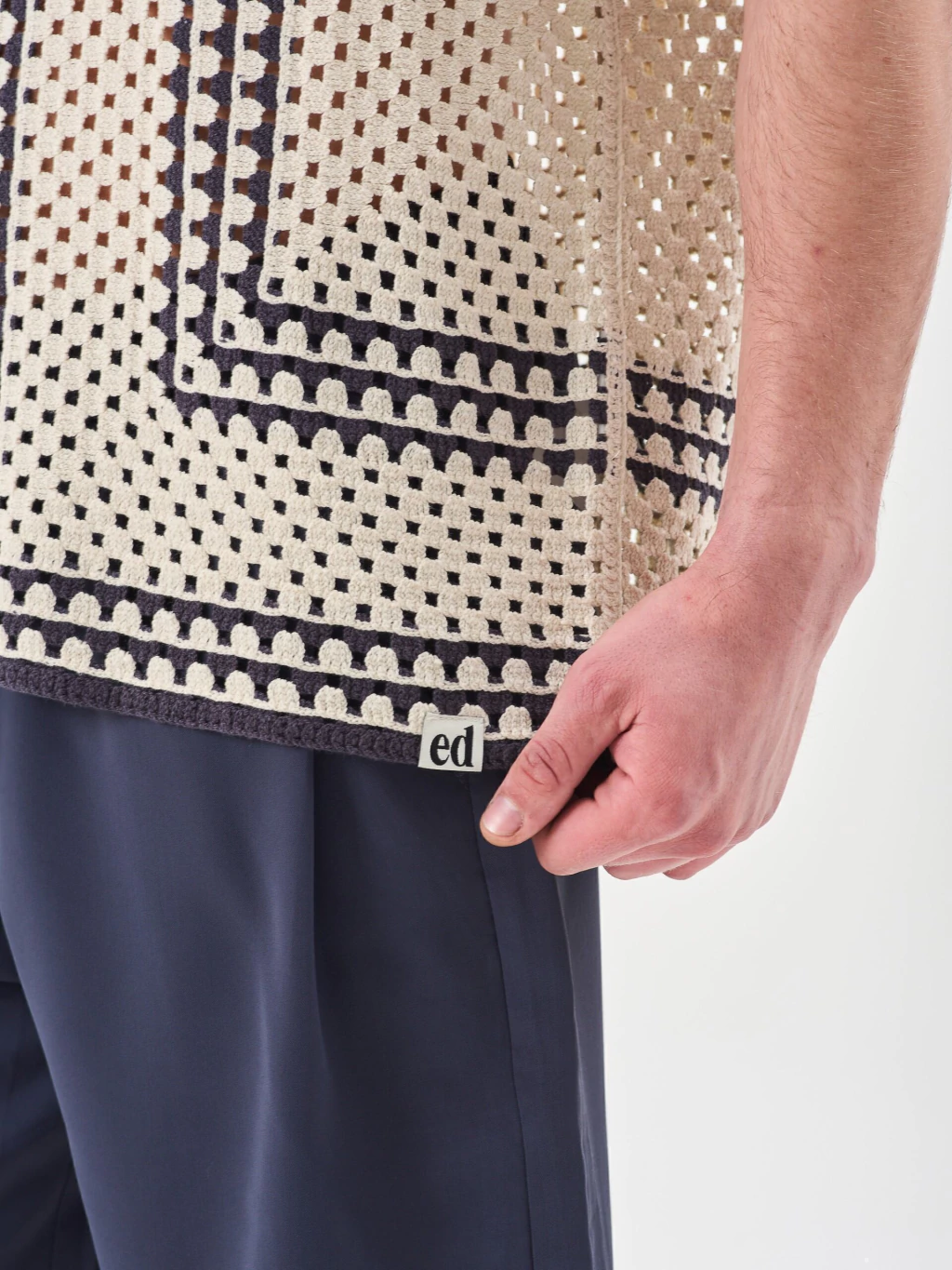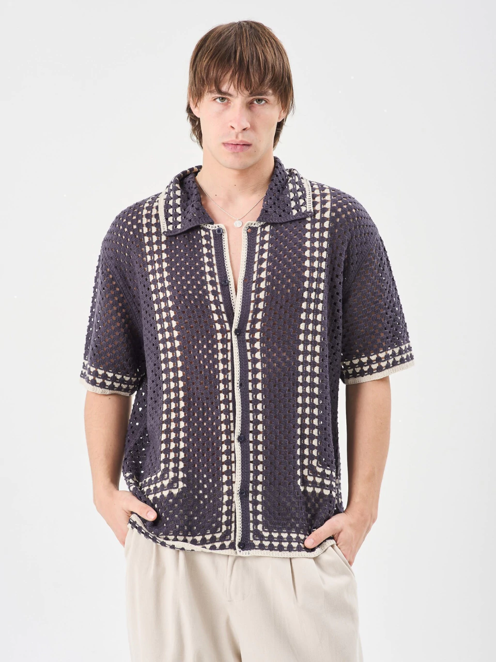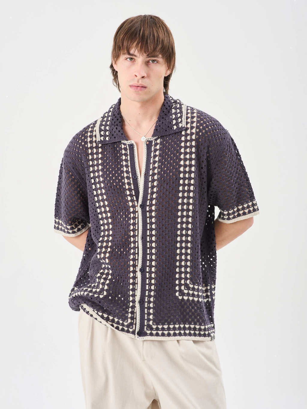 Camisa tejida con líneas en contra tono y corte regular fit, ideal para un look casual y con onda. Su diseño sutil y cómodo la convierte en un básico moderno que no puede faltar en tu guardarropa. Perfecta para usar todo el día con estilo y frescura.
