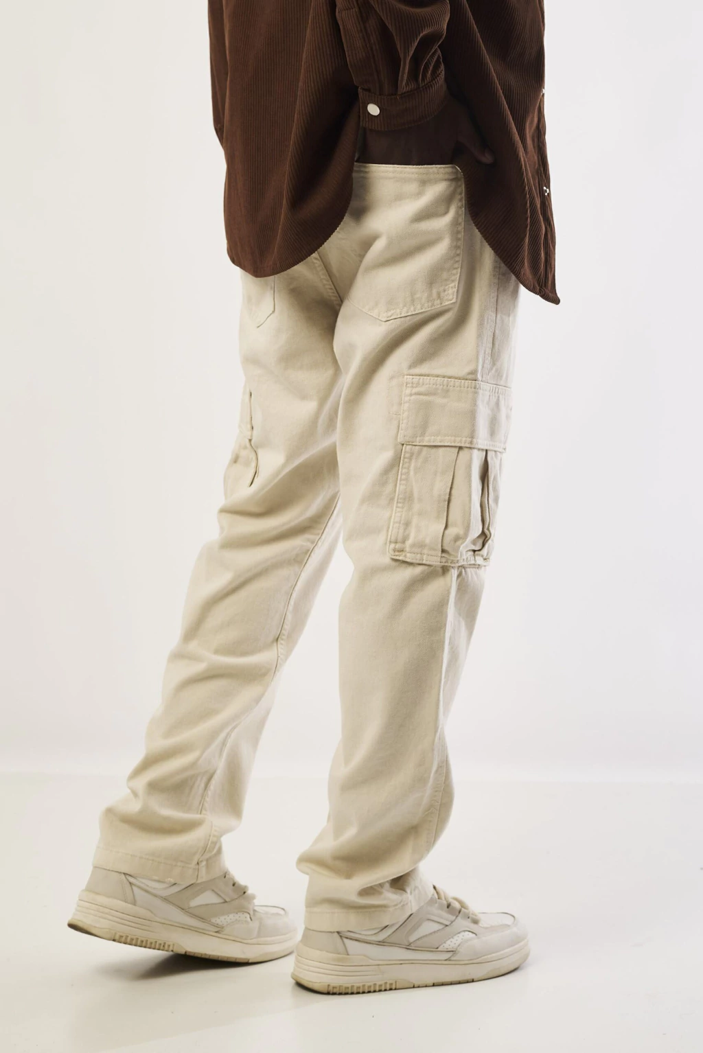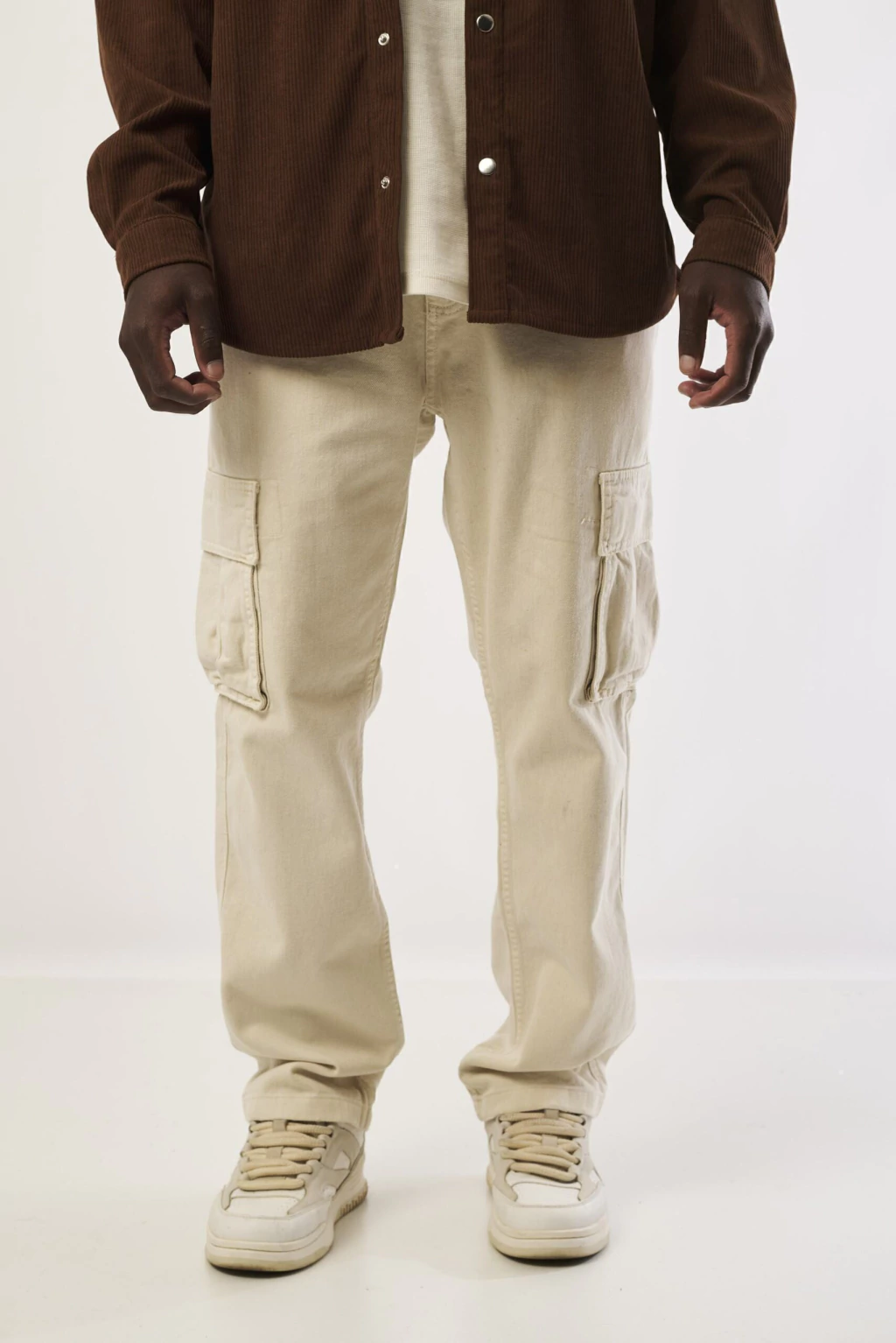 Pantalón de gabardina rígida con bolsillos cargo. Su estructura firme y detalles funcionales te acompañan en cualquier aventura del día a día. Ideal para un look cómodo y con onda.