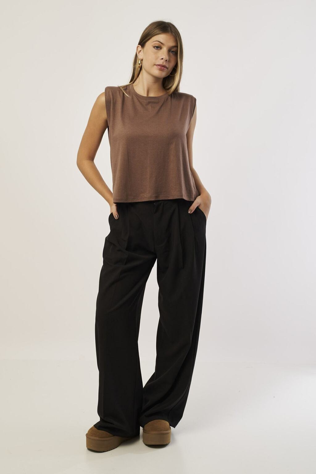 Musculosa de algodón con hombreras, un básico con estructura que eleva cualquier look. Ideal para un estilo moderno y versátil.