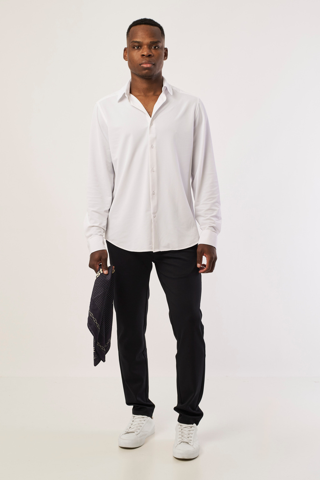 Pantalón corte chino con elástico en la cintura. De calce relajado y diseño clásico, combina estilo y comodidad para el uso diario.