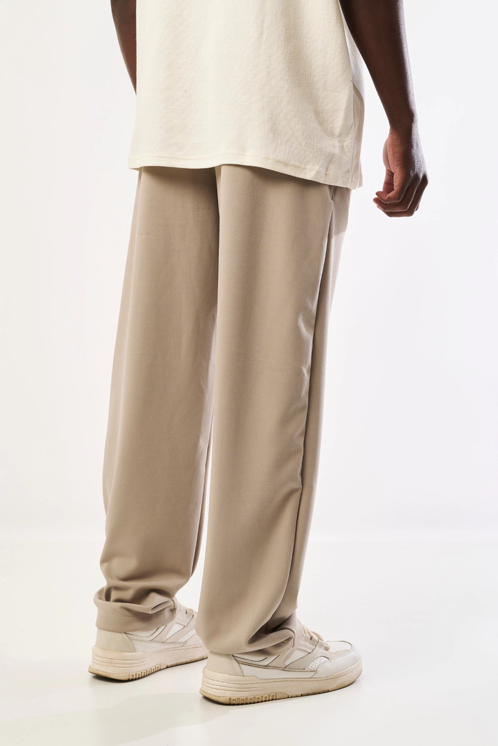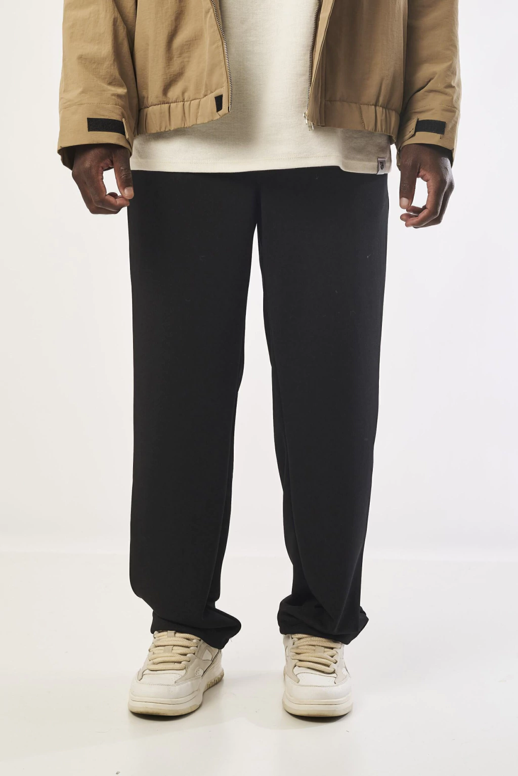 Pantalón de acetato, confeccionado con cintura elástica y lazo para un ajuste cómodo. De estilo relajado, ideal para looks urbanos o deportivos.