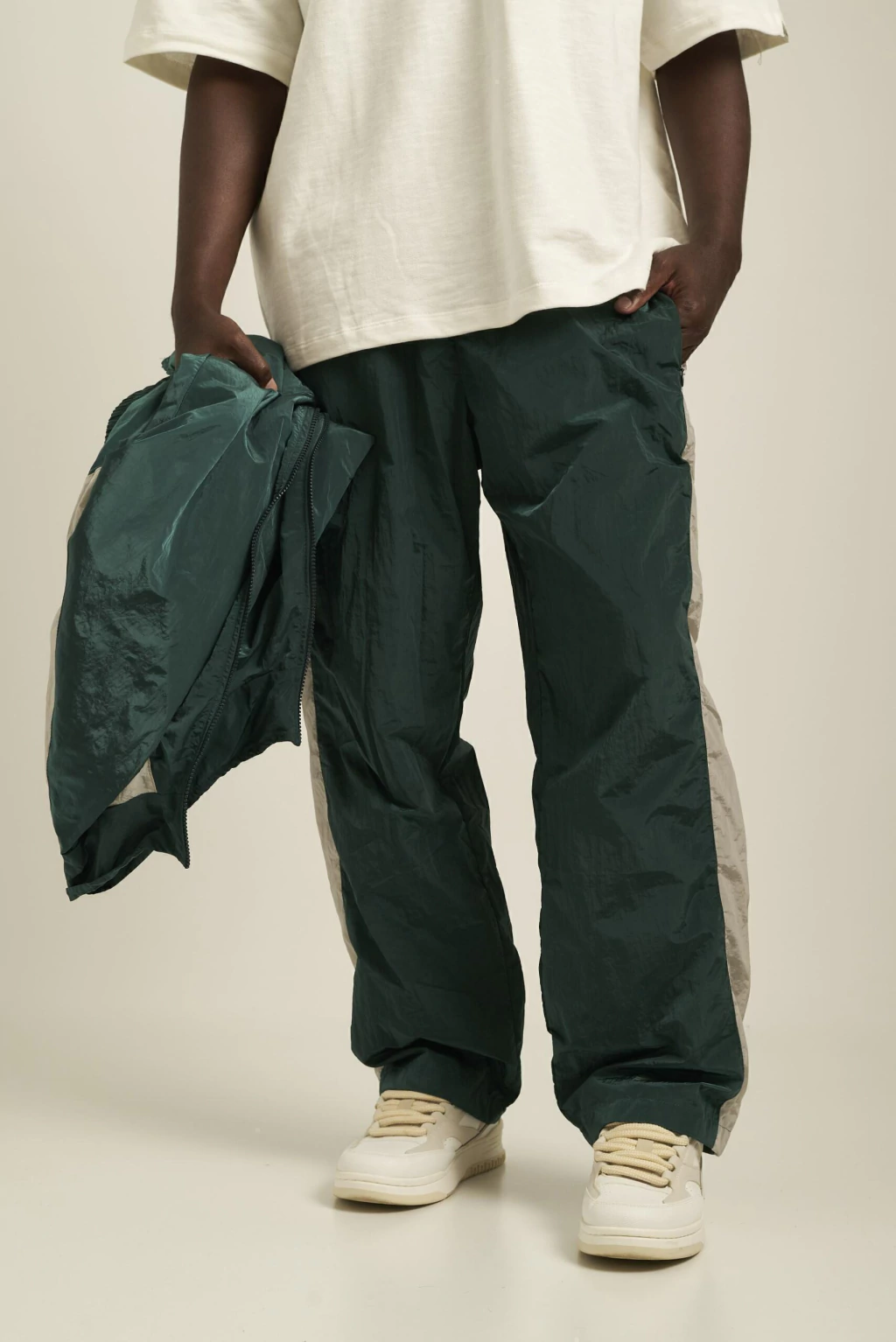 Pantalón de siré, corte regular fit, con recortes laterales que aportan un diseño moderno. Cuenta con elástico en la cintura y bolsillos con cierre para mayor funcionalidad.