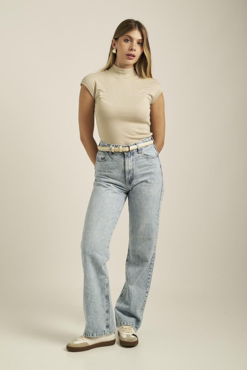 Wide leg tiro alto de denim rígido. Diseño clásico de confección normal con ruedo prolijo. Ideal para un look moderno y versátil.